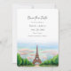 Avec sa tour Eiffel emblématique et son élégance française classique, cette carte Paris Save the Date est la meilleure façon de célébrer votre amour. Ce design customisé sur le thème du voyage crée une belle faire-part mariage et est idéal pour les couples planifiant un mariage à destination en France. Ajoutez vos informations pour créer un souvenir unique qui allie amour, raffinement et charme parisien, une façon mémorable de commémorer votre journée spéciale.