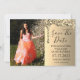 Quinceanera, Or, gouttes de parties scintillant, étincelle photo, élégant, moderne, script, enregistrer les invitations de date. Veuillez le personnaliser avec vos détails.