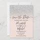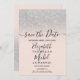 Parties scintillant argent ombre script pastel rose pâle enregistrer la date, avec élégante et luxueuse fausse parties scintillant argent scintille ombre dégradé s'estompe sur un rose éditable avec une élégante calligraphie de script