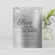 Créez votre propre mariage argenté et enregistrez les dates dans un style moderne. Parties scintillant brillante argentée avec des bords supérieurs assortis à un papier métal brossé à l'ombre grise. Toute la texture brillante, brillante, métallique et brillante est créée avec une image graphique numérique imprimée. Le style de police et la couleur peuvent être customisés.