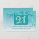 Envoyez une élégante "Save the Date" à vos amis et votre famille pour votre 21e anniversaire avec cette parties scintillant bleu turquoise moderne tombant sur le côté d'un arrière - plan dégradé turquoise.