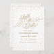Minuscules étoiles dorées brillent dans les nuages de confetti autour de cette belle carte blanche et or Save the Date, avec un script d'effet de parties scintillant d'or "Save the Date". Ambiance, chic et enchanteur. Oeuvre originale de Colleen Michele. Veuillez noter qu'il n'y a pas de véritable effet de parties scintillant or ou de feuille d'or sur les étoiles et le script ; aucune parties scintillant, feuille d'or ou encre métallique ne sera utilisée dans cette invitation.
