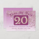 Envoyez une élégante "Save the Date" à vos amis et votre famille pour votre 20e anniversaire avec cette parties scintillant en or rose moderne tombant sur le côté d'un arrière - plan dégradé rose.