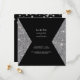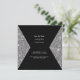 Parties scintillant argentée et Carré de style Enveloppe noire. Photo Wedding Save the Date. Retour avec Mariée et Groom Photo nom ainsi que le Mariage texte. Parties scintillant d'argent confetti. Site Web. Filtre noir et blanc appliqué à la photo.