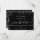 Un moderne et élégant Save the Date pour un mariage. Un arrière - plan noir décoré de parties scintillant faux argenté. brille. Personnalisez et ajoutez une date et des noms. Le texte : Save the Date est écrit avec un grand script de style à la main tendance.