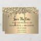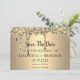 Or, gouttes de parties scintillant, étincelant, élégant, moderne, script, enregistrer la date des invitations de mariage. Veuillez le personnaliser avec vos détails.