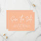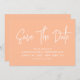 Mariage de calligraphie moderne enregistrer la date dans une couleur de pêche tendance avec un code QR numérisable pour un site Web ou les coordonnées sur le dos. Disponible sous forme de carte imprimée ou de téléchargement numérique imprimable.