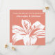 Ce minimaliste, à l'exception de l'invitation à la date, présente une silhouette d'un lis blanc sur un arrière - plan persimmon de pêche, un simple jeu de couleurs à deux tons pour un mariage d'été ou d'automne.