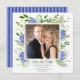 Cette photo sauvez la carte de date avec de belles hydrangées bleues, sages, multi-hued et un feuillage vert étonnant avec coordination bleu rayé dos est parfait pour annoncer votre grand jour à tous vos proches! C'est un excellent choix pour n'importe quelle mariée du printemps ou de l'été. Vous pouvez facilement vous débrouiller seul en sélectionnant Personnaliser ce modèle, en téléchargeant une photo préférée et en tapant vos informations. En quelques secondes vous verrez vos cartes uniques et étonnantes enregistrer les cartes de date!