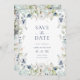 Élégante photo botanique Enregistrer la date. Cette collection est ornée de feuilles vert sauge peints à la main et de délicates baies bleues poussiéreuses, offrant un mélange captivant de sophistication et de charme. Avec l'option bleu marine ou vert sauge texte, vous pouvez adapter cette suite à parfaitement compléter votre thème mariage et votre style personnel. Des réunions intimes aux grandes fêtes, la suite Mariage Sage Green & Navy Blue Botanical vous accueille pour une occasion inoubliable.