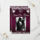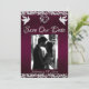 Ce design romantique présente un fond violet élégant avec des bordures pailletées, un espace pour la photo du couple, un cœur argenté délicat et des colombes avec la date de l'événement en écriture élégante sur le devant. Le verso comporte un espace pour un monogramme, plus d'informations et un emplacement pour votre site web. Également disponible avec des fonds de différentes couleurs pour correspondre à vos couleurs de thème de mariage. (Les paillettes sont simulées dans l'illustration). Conçu pour se coordonner avec la collection de mariages "Two Shall Become One - Hearts, Doves & Glitter". Pour modifier les détails, cliquez sur « Personnaliser ». Remplacez la photo par la vôtre. Pour déplacer le texte ou modifier la taille, la police ou la couleur du texte, cliquez sur « Cliquez pour personnaliser davantage ».