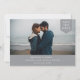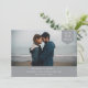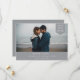Simple typographie traditionnelle, étiquette photo, mariage enregistrer la carte de date. Caractéristiques de design, photo horizontale unique, typographie blanche et arrière - plans de couleur gris tendance.