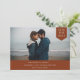 Simple typographie traditionnelle, étiquette photo, mariage enregistrer la carte de date. Caractéristiques de design, photo horizontale unique, typographie crème et arrière - plans de couleur sienne dans le désert foncé.