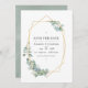 Invitation de mariage photo avec cadre géométrique doré et eucalyptus forestier aquarelle argentée personnalisable selon les spécificités de votre événement. Idéal pour n'importe quel thème ou mariage champêtre.