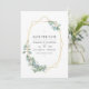 Invitation de mariage avec cadre géométrique doré et aquarelle argentée sauge, personnalisable selon les spécificités de votre événement. Idéal pour tout thème ou mariage dans un jardin.