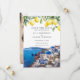 Cette élégante invitation de mariage avec save the date avec aquarelle de citrons et scène de Santorin Grèce peut être personnalisée avec vos informations en typographie chic et toutes vos photos spéciales au verso. Conçue par Thisisnotme©