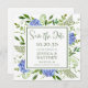 Cette superbe carte de mariage avec photo d'hortensias bleus 'Save the Date' est parfaite pour informer vos invités de réserver la date de votre mariage imminent. Avec ses hortensias bleus multicolores aquarellés, sa verdure naturelle vaporeuse et une belle photo de vous en couple au dos, elle est idéale pour partager votre joie et votre excitation avec vos amis et votre famille. Tout le monde sera ravi de se joindre à vous pour célébrer votre jour de mariage !
