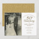 Personnalisez avec votre photo de mariage préférée et les détails de votre célébration spéciale de vos 50 ans d'anniversaire de mariage dorés dans une typographie chic en or. Le verso présente des confettis en forme de cœur en or. Conçu par Thisisnotme©