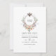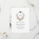 Faire-part de mariage à l'aquarelle présentant un blason fantaisiste sur le thème de la forêt et des bois personnalisable avec les initiales du couple.