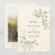 Cette élégante carte de sauvegarde de mariage comporte des fleurs sauvages aquarelles peintes à la main en jaune beurre, vert sauge, vert poussiéreux et bleu clair avec une photo et plus d'informations au dos. Pour une personnalisation plus avancée de ce design, veuillez cliquer sur le bouton OUTIL DE CONCEPTION BLEU ci-dessus ! Les articles assortis sont également disponibles.