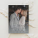 Cette carte de rappel de mariage élégante et classique est simple et polyvalente. Elle présente un texte incurvé chic et des détails de script, une photo verticale plein cadre et un texte modifiable formel. Cliquez sur le bouton modifier pour personnaliser ce design.