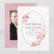 Invitation de mariage de printemps florale aquarelle rose avec fleurs de sakura et cadre géométrique doré personnalisable selon les spécificités de votre événement. Idéal pour n'importe quel thème ou mariage dans un jardin.