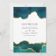 Faire part de mariage à personnaliser avec une aquarelle sarcelle et un faux papier d'or représentant une pierre d'agate, selon les spécificités de votre événement.