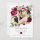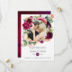 Carte de mariage florale bohème avec photo pour annoncer votre mariage avec des fleurs de pivoine et d'anémone, de la verdure et des plumes dans des accents de prune bordeaux et de rose tendre personnalisable à vos spécificités.
