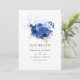 Invitation de cérémonie de mariage à l'aquarelle vintage florale avec une tendance bleu royal et argent conçue pour être personnalisée rapidement et facilement selon vos spécificités. Idéal pour tout thème ou mariage dans un jardin.
