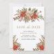 Étonnez vos invités avec cette élégante carte 'Save the Date' présentant de belles fleurs de poinsettia rouges et des feuilles de pin rustiques.