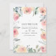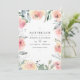 Invitation de photo de mariage avec roses et pivoines rose blush conçue pour être rapidement et facilement personnalisée selon les spécificités de votre événement. Idéal pour n'importe quel thème ou mariage champêtre.