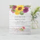 Invitation de mariage rustique boho tournesols et dahlias dans des teintes de burgundy et de couleurs soleil. Idéal pour tout thème ou mariage champêtre.