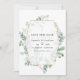Enregistrez la photo de mariage avec herbier d'eucalyptus de forêt sauvage avec un cadre géométrique doré et un lavis aquarelle de sauge argentée au verso conçu pour être personnalisé rapidement et facilement selon les spécificités de votre événement.