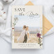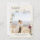 Surprenez vos invités avec ces cartes modernes et élégantes de Save the Date avec un fond ivoire, de jolies fleurs sauvages, votre photo personnalisée et votre texte. Ajoutez facilement vos détails en cliquant sur l'option "personnaliser".
