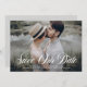 Sauvez notre date ! Annoncez votre date de mariage à votre famille et amis avec cet élégant enregistrer la carte à plat date. Il présente un élégant script florissant avec une superposition typographique classique. Personnalisez en ajoutant les noms, la date, le lieu, la photo et d'autres détails mariages. Cette annonce de la date est parfaite pour tout thème et saison mariage. Ce design est disponible sous forme de carte à plat, d'aimant et de carte postale.