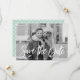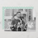 Donnez le ton à votre prochain mariage en annonçant votre date avec notre Script élégant enregistrer la carte de date. Le moderne save the date card dispose d'une police de caractères manuscrite avec un motif vert menthe tendance au dos. Personnalisez l'annonce de la date avec vos noms, date mariage, ville et photo fiançailles pour un design qui est sûr d'impressionner!