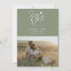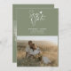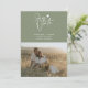 Annoncez votre journée spéciale avec ces cartes modernes minimalistes avec un script de calligraphie manuscrit Save The Date contre un arrière - plan vert sage. Customisez facilement vos renseignements personnels et votre photo sur le devant et le dos pour en faire votre propre.