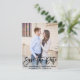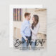 Utilisez notre photo de portrait enregistrer les cartes de date avec un script de brosse moderne pour informer vos invités de bloquer votre date de mariage à l'avance. Astuce : si vous devez modifier le libellé de la police de script, vous pouvez aller à la section "Personnaliser ce Modèle" puis cliquer sur "Cliquez pour Customiser plus loin" en bas. Vous pouvez supprimer n'importe laquelle des images texte dont vous avez besoin et ajouter votre propre texte à sa place avec le bouton "Ajouter du texte". N'oubliez pas de consulter notre grande sélection de photos enregistrer les cartes de date, les cartes postales et les magnets en parcourant notre collection Photo Save the Date!