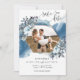 Magnifique photo, aquarelle bleue et bleu floral et feuillage Mariage Enregistrer la carte Date. À l'avant, une belle célébrité géométrique entourée de fleurs et de feuillage avec l'image à l'intérieur et cascade de tache d'aquarelle bleue sur le dos. Utilisation de détails de calligraphie écrits à la main modernes. Sur le dos en cascade délicate tache d'aquarelle bleue. Aussi disponible avec collage photo sur le dos. Une partie de notre collection "Rustic Blue Mountains" avec une variété de produits de coordination disponibles.
