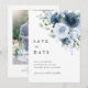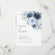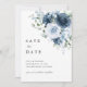 Save The Date Photo Fleurs de mariage bleu poussiéreux marine