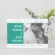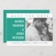 Gras Photo Géométrique Enregistrer la Date Annonce avec un design géométrique minimaliste et moderne en vert et blanc. Ajoutez une photo et les détails de votre mariage pour customiser. La couleur Arrière - plan sur le côté arrière de l'invitation peut être modifiée pour compléter la photo ou pour ajouter votre couleur mariage.