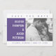 Gras Photo géométrique Enregistrer la date Annonce avec un design géométrique minimaliste et moderne dans ultraviolet violet et blanc. Ajoutez une photo et les détails de votre mariage pour customiser. La couleur Arrière - plan sur le côté arrière de l'invitation peut être modifiée pour compléter la photo ou pour ajouter votre couleur mariage.