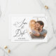Cette photo moderne enregistrer la date annonce dispose d'un cadre photo hexagone sur un arrière - plan blanc propre. Le design est accentué par un script élégant, et du texte personnalisé pour la date, les noms et l'emplacement du mariage. Le texte supplémentaire, à l'arrière, vous permet d'ajouter plus de détails mariages.