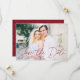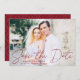 Annoncez votre date mariage dans le style avec notre photo moderne tendance enregistrer les cartes de date. La conception affiche votre photo de fiançailles horizontal à fond saigné avec "Save the Date" dans une superposition de script manuscrit bordeaux avec un dégradé blanc en option. Personnalisez l'avant de sauvegarder le carte photo de date en ajoutant vos noms, votre date de mariage et votre emplacement de mariage. Le simple enregistrer la date carte photo revient à un motif géométrique pointillé bordeaux et blanc.
