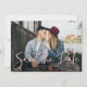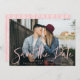 Moderne enregistrez la carte de date avec votre photo horizontale de fiançailles avec "Enregistrer la date" affichée dans une superposition de script rose et écrit à la main. Personnalisez l'avant de la photo enregistrez la carte de date avec vos noms, date mariage et collection de mariages. Le dos de la simple enregistrer la carte date comporte un motif rose et blanc en option.