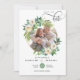 Annoncez votre mariage avec cette belle photo Save the Date card avec cadre géométrique élégant montrant votre photo avec une aquarelle exquise florale en blanc, miel, or et tons verts. Retour dans une texture élégante vert pâle, sauge et vert aquarelle. Même conception également disponible avec dos en couleur jaune miel aquarelle texture.