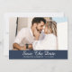 Elégant bleu marine photo mariage enregistrer les cartes de date avec une photo fiançailles et un script sur un arrière - plan bleu marine. Mariage bleu marine personnalisé enregistrer les cartes de date. Mariage bleu marine personnalisable enregistrer les cartes de date. Script mariage enregistrer les cartes de date.