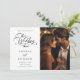 Un élégant mariage noir et blanc sauve la date avec une calligraphie romantique et tourbillonnant en lettres avec texte facultatif et une photo au dos. Parfait pour toute saison. Pour une personnalisation plus avancée de cette conception, cliquez sur le BOUTON OUTIL DESIGN BLEU ci-dessus !