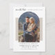 Mariage moderne et élégant enregistrer la carte faire-part date dispose d'un design moderne et minimaliste avec une photo en arc encadrée par une autre forme de bloc de couleur géométrique en taupe neutre / gris beige - qui complète l'arrière - plan imprimé sur le côté arrière de la carte. Personnalisez le texte personnalisé simple et élégant avec tous les détails importants, y compris la date du mariage, les noms des mariées et mariées, l'emplacement de la cérémonie, et le site Web du mariage. Couleur classique noir et blanc avec accent taupe.