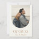 Un mariage moderne sauvez la date avec un design chic élégant et un style boho minimaliste avec votre photo dans un cadre en arc.